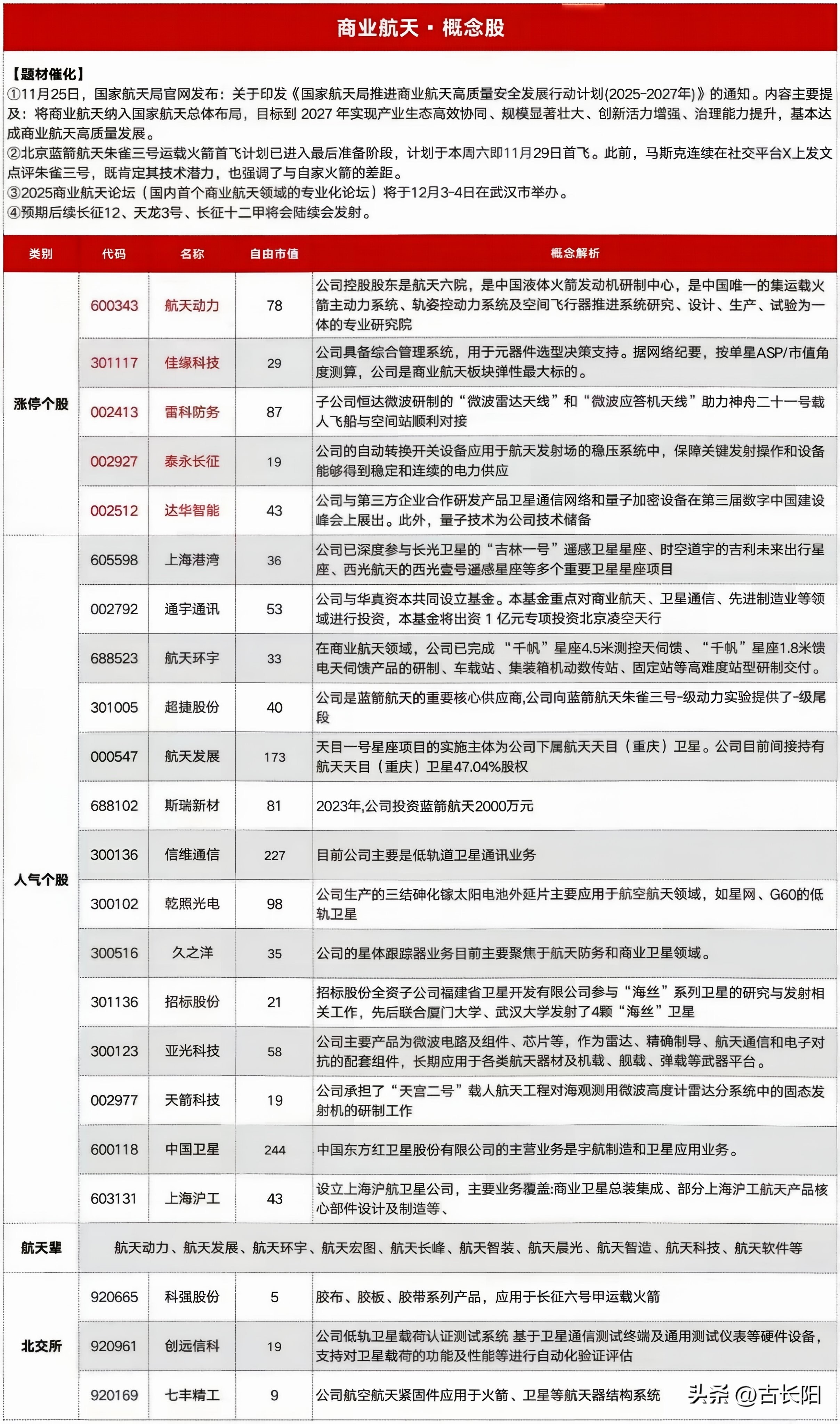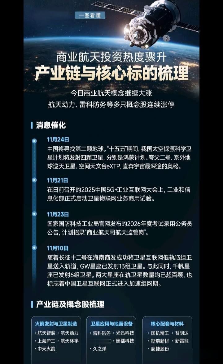 最近商业航天又来大动作,商业航天司成立了。这将有效整合多部门相关职能,实现统筹协调。我国十五五期间还将发射系外地球巡天卫星,寻找第二颗地球。昨日航天局又印发了《国家航天局推进商业航天高质量安全发展行动计划》。