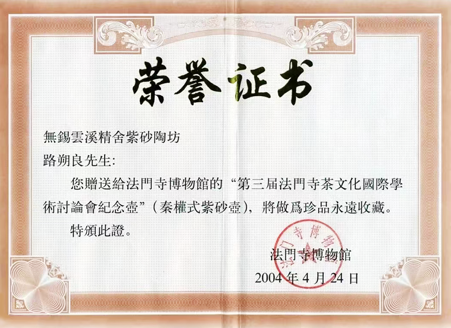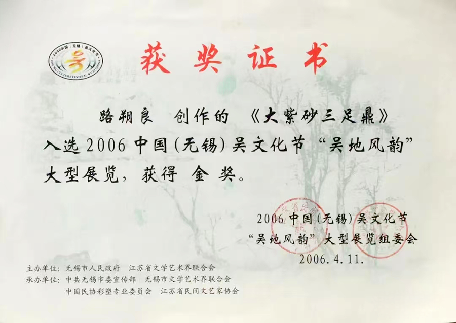 学术肯定与技术复兴:宋伯胤从学术角度肯定了路朔良对清代陈鸣远紫砂艺术传统的继承与创新,指出其纹饰移植(如蝉翼纹、带状纹)是“紫砂史上罕见的美化手法”。路朔良的技术实践(如朱泥大器、青铜纹饰)为宋伯胤的紫砂研究提供了当代案例,印证了紫砂工艺的“文化厚度”。