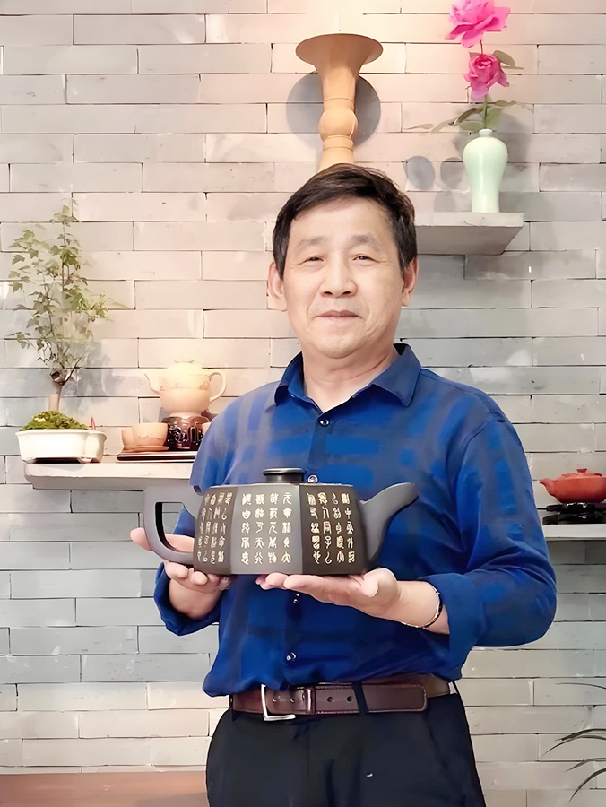 青铜纹饰复兴:路朔良独创了“仿青铜紫砂”风格,将商周青铜器的夔龙纹、云雷纹、蝉纹等移植于紫砂器,复活失传270多年的工艺,填补了清代陈鸣远后紫砂工艺技术的断层。