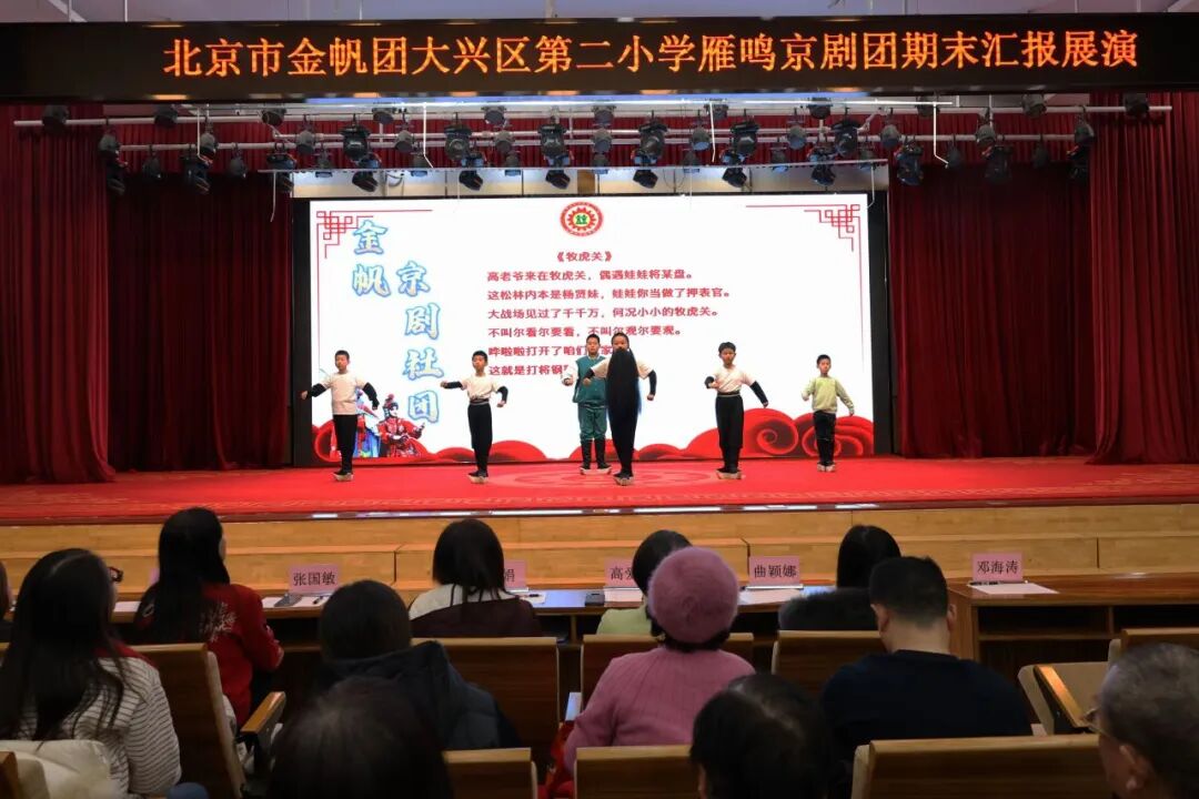2026年1月4日,北京市大兴区第二小学举办2025-2026学年第一学期京剧社团期末汇报演出。本次活动邀请了大兴区第二小学校长高爱军及领导班子成员和集团校青云店第一小学德育主任曲颖娜参加,与300余名师生、家长齐聚一堂,共同见证小团员们的成长。