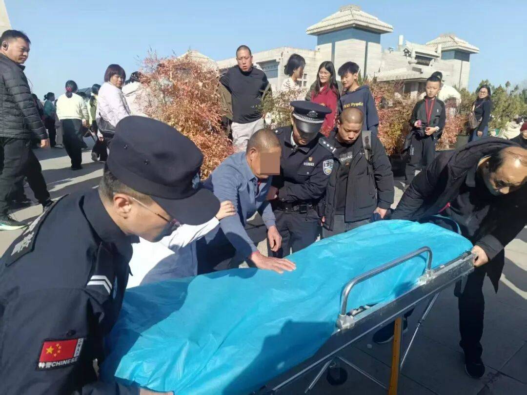 2月19日下午,公安临潼分局反恐怖和特警大队副大队长金磊带队在秦始皇帝陵博物院二号坑遗址门前巡逻时,发现一名老人不慎摔伤。