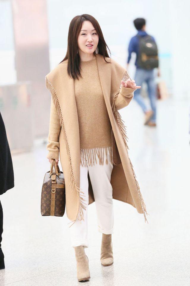 这套驼色造型,也完美诠释了老钱风,驼色流苏大衣柔软的羊毛材质自带高级感,下摆和袖口的流苏设计随风摆动,增添了灵动与优雅。内搭同色系针织衫,色调统一和谐,下半身搭配白裤子,轻轻松松营造出温暖又高级的氛围。