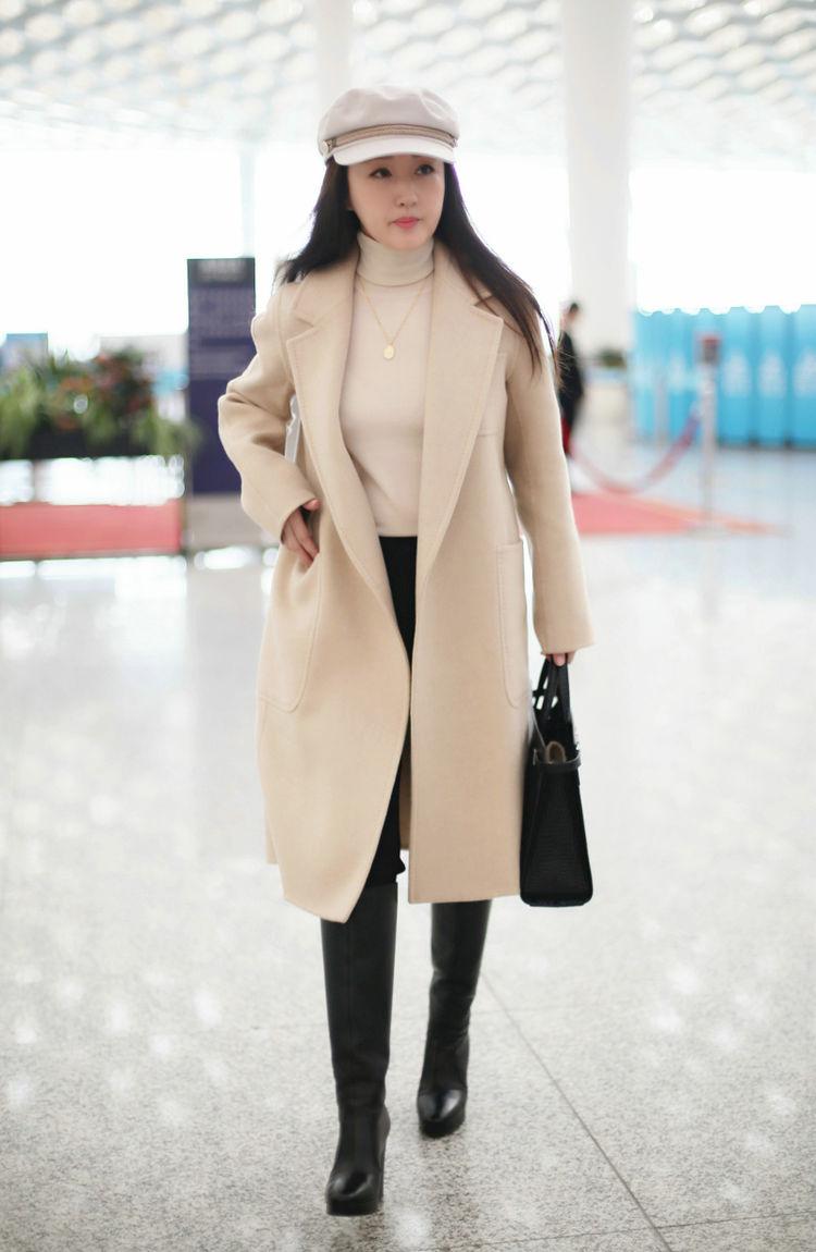 再看杨钰莹这套大衣造型,充满了法式优雅的减龄感。棕色大衣版型利落,线条干净,自带柔光滤镜,衬得她肤色白皙。内搭高领衫,与大衣形成同色系叠穿,视觉上更显修长,也更显温柔。
