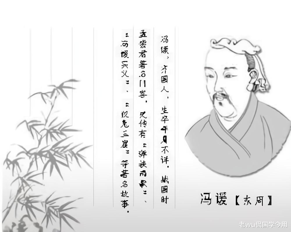 战国时期齐国人冯谖,起初只是个穷人,为了改变自己缺衣少食的现象,慕名投靠到战国四公子之一、薛国国君孟尝君门下,成为其下等食客之一。