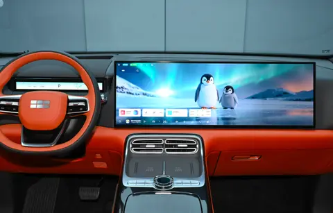 银河M9在车内配备了12.66英寸全液晶仪表盘,特殊点在于它的造型是长条内嵌式的,中控屏的部分则是与副驾相连通,形成了30英寸的贯穿式屏幕。