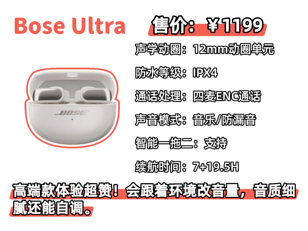Bose Ultra价格:1199元推荐理由:高端之选,音质佩戴都属高水准