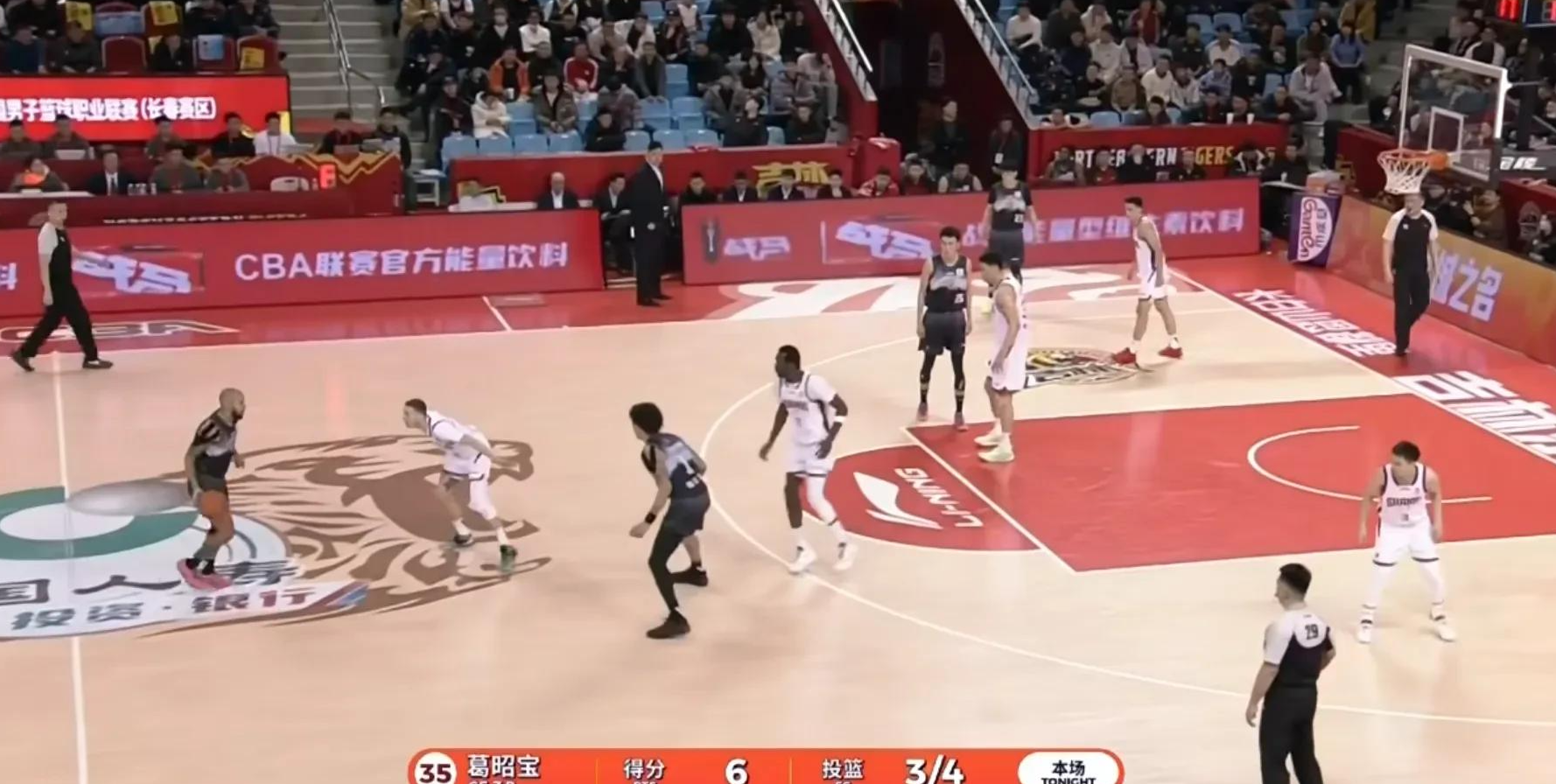 次节,葛昭宝抛投不中,栾利程三分不中,曾繁日造法耶犯规2+1,加罚不中。曾繁日送法耶上罚球线两罚中1,14-40。盖伊抢断边线发球,被盖利反抢打成2+1,葛昭宝中投2分,姜伟泽三分不中,贾明儒造姜伟则3+1,盖利中投不中,葛昭宝中投又中,曾繁日弧顶命中三分,葛昭宝又中2分,20-50。刘雁宇飙进三分,法耶抛投2分,法耶2+1,这段时间体现出了盖伊盘活球队的能力。22-55。