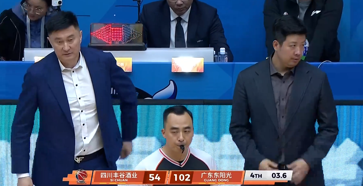 随着比赛深入,场上分差也越来越大,广东队2节半时间已经砍下了72分,取得72-33领先,提前打花比赛。
