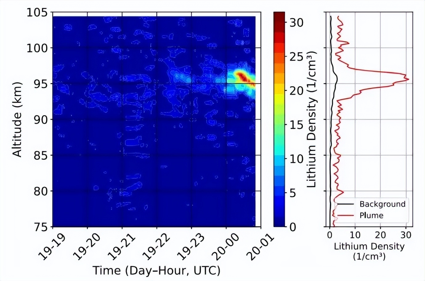 研究人员选择锂作为目标,就是因为它在天上几乎不存在,只要有信号就一定是人造的。2025 年 2 月 20 日凌晨 0 点 21 分,信号来了。在 96 公里的高度,锂原子的密度突然飙升到平时的 10 倍。这个异常区域的厚度只有两公里多,宽度为几十公里,在激光雷达的屏幕上一清二楚。信号持续了至少 40 分钟,直到准备的燃料用完研究人员才停止观测。