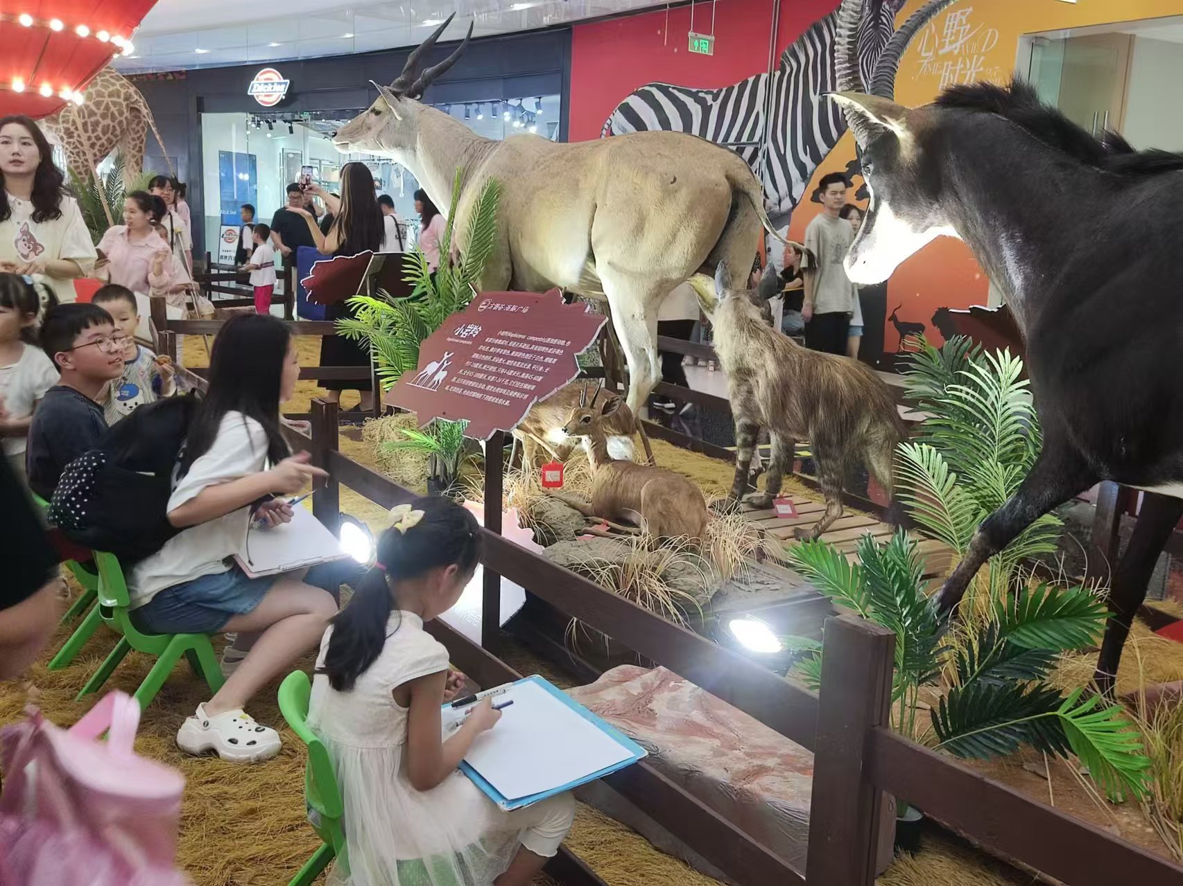 “日间,扭角林羚一般不怎么活跃,会躲在林地之中。它们会于早上及黄昏时段觅食。虽然它们倾向留在同一地方生活,但也会在干旱的季节迁徙到较远的地方。尤其是在水源较缺乏的纳米比亚,它们在很短的时间就会迁徙一次……”15:00,通过包括“爽贵阳APP”在线报名的小朋友们化身小小探险家,孩子们在讲解员老师的带领下,走进陈列有20余种非洲空运真实动物标本,1:1还原大迁徙场景的非洲大草原,认识狂奔的斑马群、狮子和鬣狗捕食落后的羚羊、飞跃马拉河的角马,共同开启研学之旅。