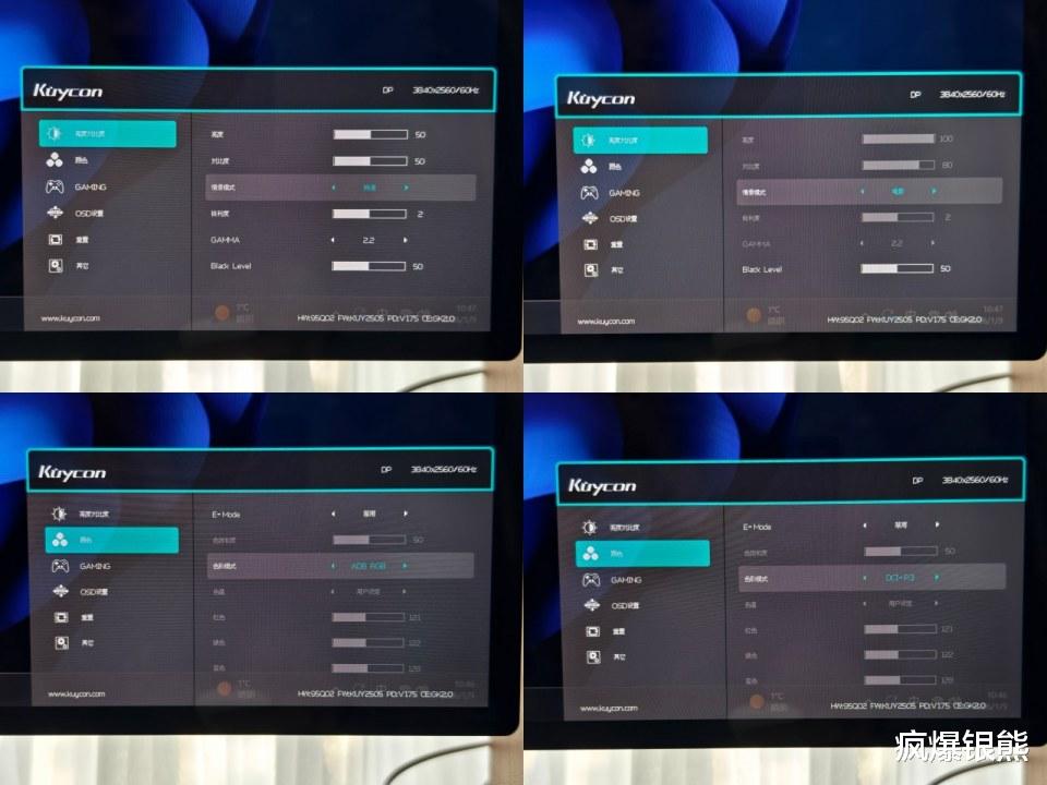 作为专为专业设计用户设计显示器,酷优客P10内置了SRGB、ADB RGB和DCI-P3等多种色彩模式供用户选择。同时其在OSD菜单中也提供了标准、文本、网页、电影四种情景模式。