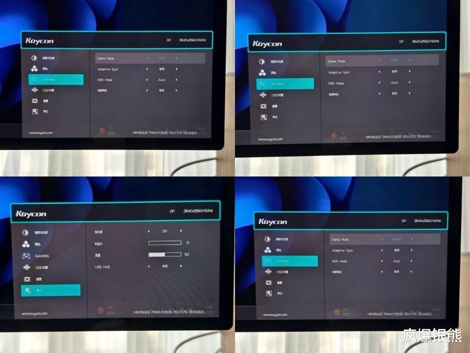 另外它还为游戏玩家提供了如FPS、MOBA、RTS等多种游戏模式,菜单中可开启关闭可变刷新率、画面防撕裂,HDR及加速响应时间等。另外菜单中,其也提供了低蓝光护眼模式,可降低显示器对眼睛的刺激伤害。