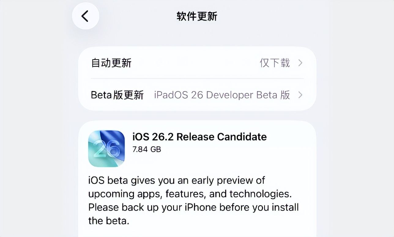 最近这段时间,不少苹果用户都在等待 iOS26.2 的新版本推送,也就是 iOS26.2Beta4 版本。但这次苹果直接跳过了 iOS26.2 beta4 版本,直接发布了 iOS26.2RC 准正式版系统,这也是很让人匪夷所思。那么这次的准正式版系统续航情况如何呢?我们一起来看看吧: