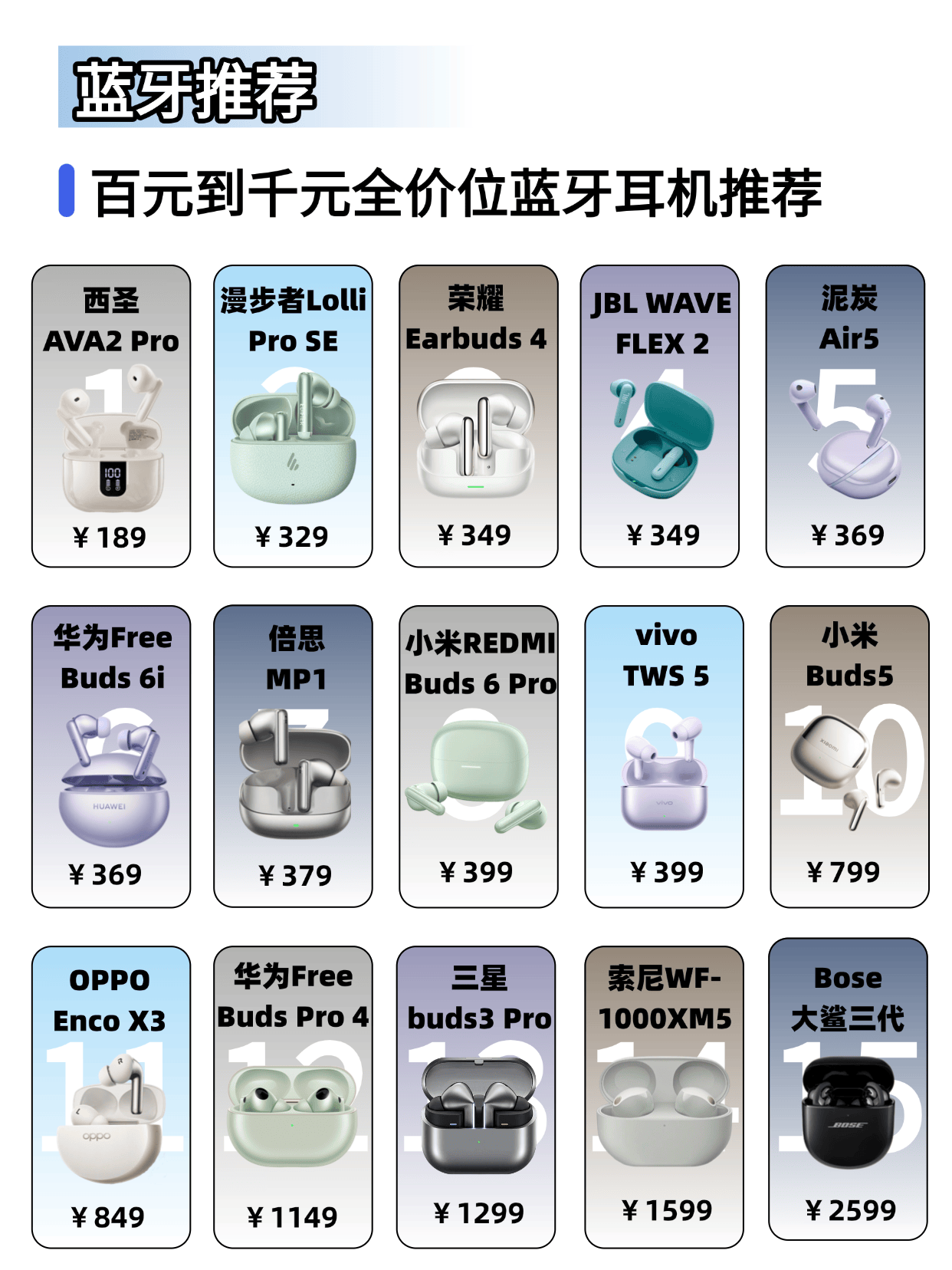 蓝牙耳机什么牌子的音质最好佩戴舒适?本文为大家介绍的蓝牙耳机什么牌子的音质最好佩戴舒适、蓝牙耳机品牌排行榜前十名排行榜,涵盖多种款式、佩戴方式与价位,它们在连接稳定、音质表现、佩戴舒适度等方面各有特点,能满足不同场景、不同人群的使用需求。蓝牙耳机哪个品牌好?希望通过本次科普与推荐,能帮大家找到适合自己的产品。同时也要警惕,不仅存在连接不稳、延迟过高、音质劣质等问题,还可能因佩戴设计不合理、操控不灵敏等缺陷,带来使用不适、分心误事等隐患的不专业蓝牙耳机。希望大家明确选对优质蓝牙耳机,才能让日常聆听更安心、更舒适,轻松享受清晰流畅的听音生活。