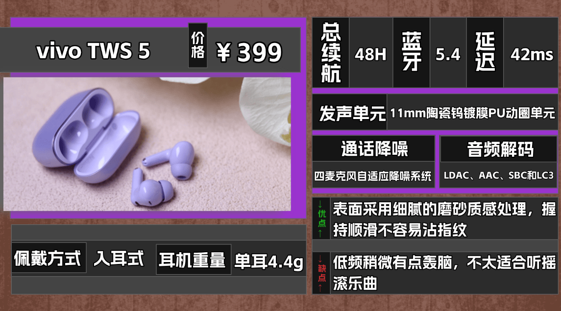 推荐品牌 3、V ivo T WS 5蓝牙耳机