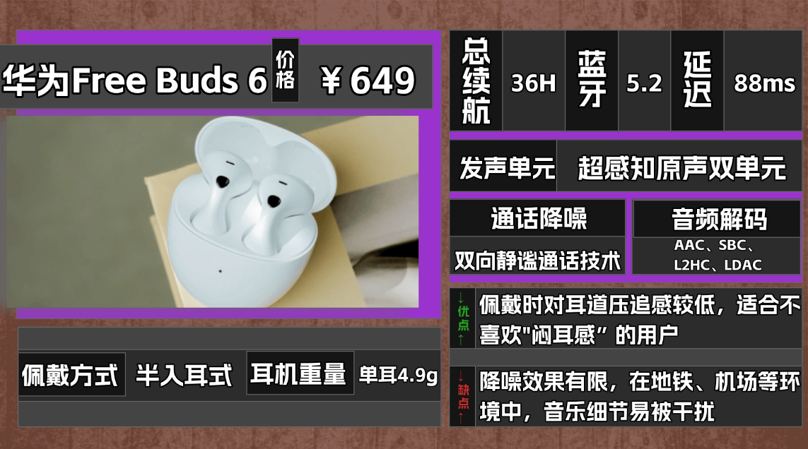 推荐品牌 5、华 为F reeBuds 6蓝牙耳机