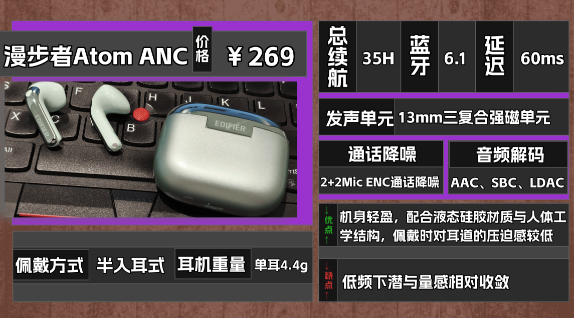 推荐品牌 9、漫 步者A tom ANC蓝牙耳机