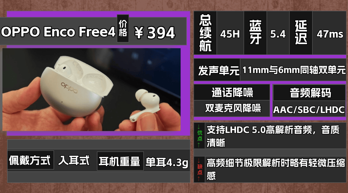 推荐品牌 6、O PPO E nco Free4蓝牙耳机