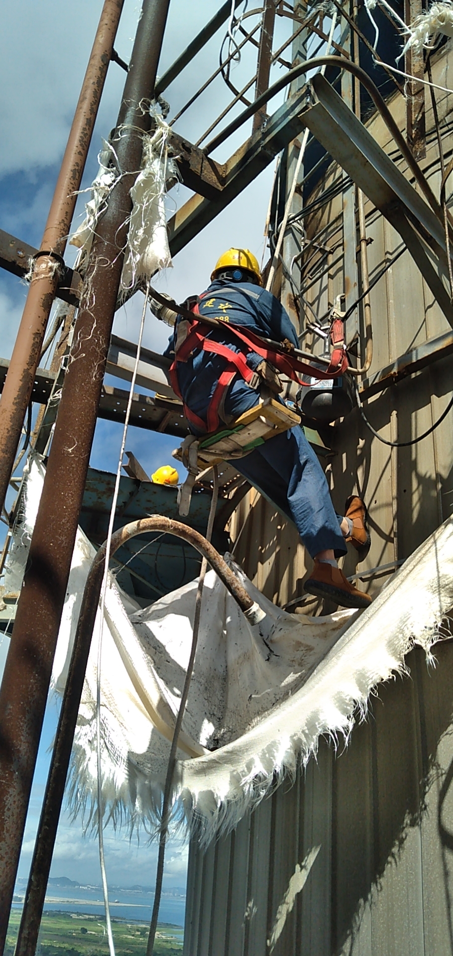2.采用高空吊篮、安全绳、双钩安全带、防坠器,高空作业人员持证上岗。