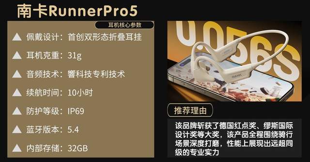 4.总结:南卡RunnerPro5全面覆盖日常通勤、骑行、户外越野等多种场景,以硬核配置兼顾高端体验、佩戴舒适度与便捷操作,精准匹配看重专业性能与实用性的运动人群,是高端全能型运动骨传导耳机的优质之选。