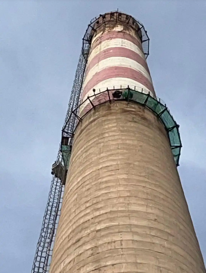 作为工业生产的核心配套设施,邢台该企业的烟囱长期承受高温烟气侵蚀、风雨冲刷及物料腐蚀,逐渐出现了筒壁裂缝、混凝土剥落、表面锈蚀、附属设施老化等诸多问题。其中,部分区域筒壁混凝土剥落面积达35㎡,爬梯踏板锈蚀断裂20余块,顶部避雷针接地电阻超标,不仅影响了烟囱的排烟效率,更对厂区生产安全构成了严重威胁。为彻底解决这一隐患,业主方经过多方考察对比,最终选定在高空工程领域经验丰富、技术过硬的宏顺建设承接此次维修任务。