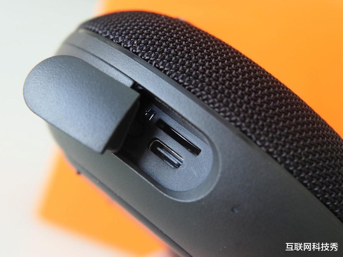细节设计体现出对户外场景的便利性,顶部四枚凸起式盲操作大按钮触感清晰、反馈干脆,即使戴手套也能精准操控;同侧边还有硅胶盖子,里面接口为充电口和TF卡,硅胶塞的应用可达到IP67级防尘防水,对于喜欢登山露营及漂流溅水的特殊情况,红米蓝牙小音箱2一样能从容应对。最点睛的是可拆卸的金属挂扣设计,既可悬挂于背包、帐篷,又能作为手环便携,兼顾美学与实用性。