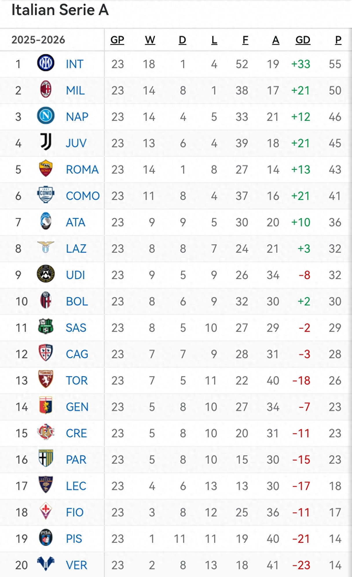 从球队阵容和状态来看,国米也是本赛季意甲毫无争议的第一!欧冠赛场国米是意甲球队中战绩最好的,淘汰赛附加赛他们的对手是挪威球队博德闪耀,不出意外他们将肯定进入欧冠十六强!那不勒斯没能进入附加赛,成为意甲第一支被淘汰出局欧冠的球队!尤文图斯和亚特兰大的对手都不弱,想要晋级一番苦战是在所难免的!米兰本赛季没有获得参加欧冠的资格!国米当家射手劳塔罗近期状态火爆,12场比赛打入10球,正是他的出色发挥,让国米在赛季的关键时刻能够保持竞争力!
