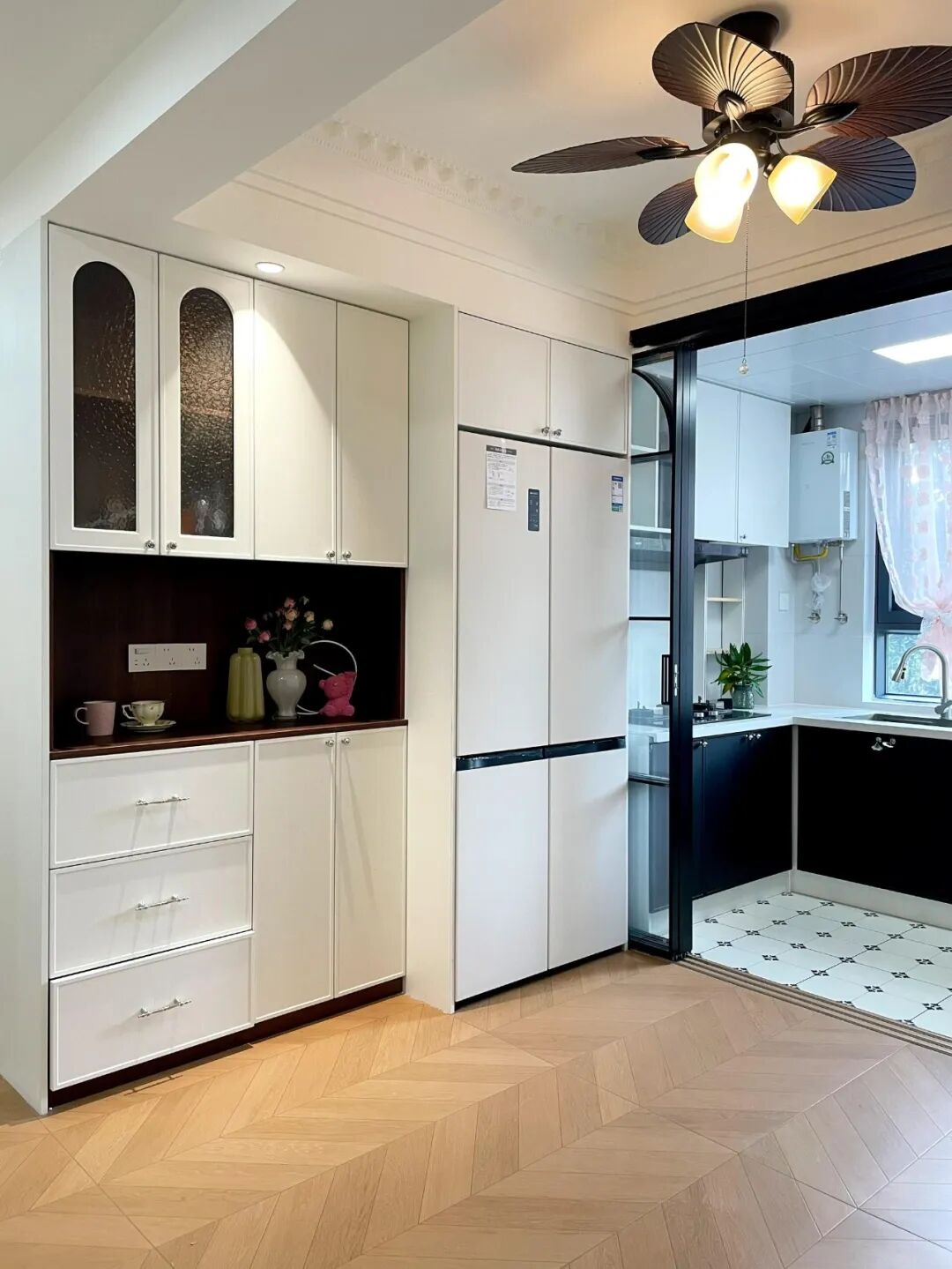 这些地方都应该空出来,冰箱、洗衣机尽量做嵌入式设计,视觉效果更加整洁、统一。