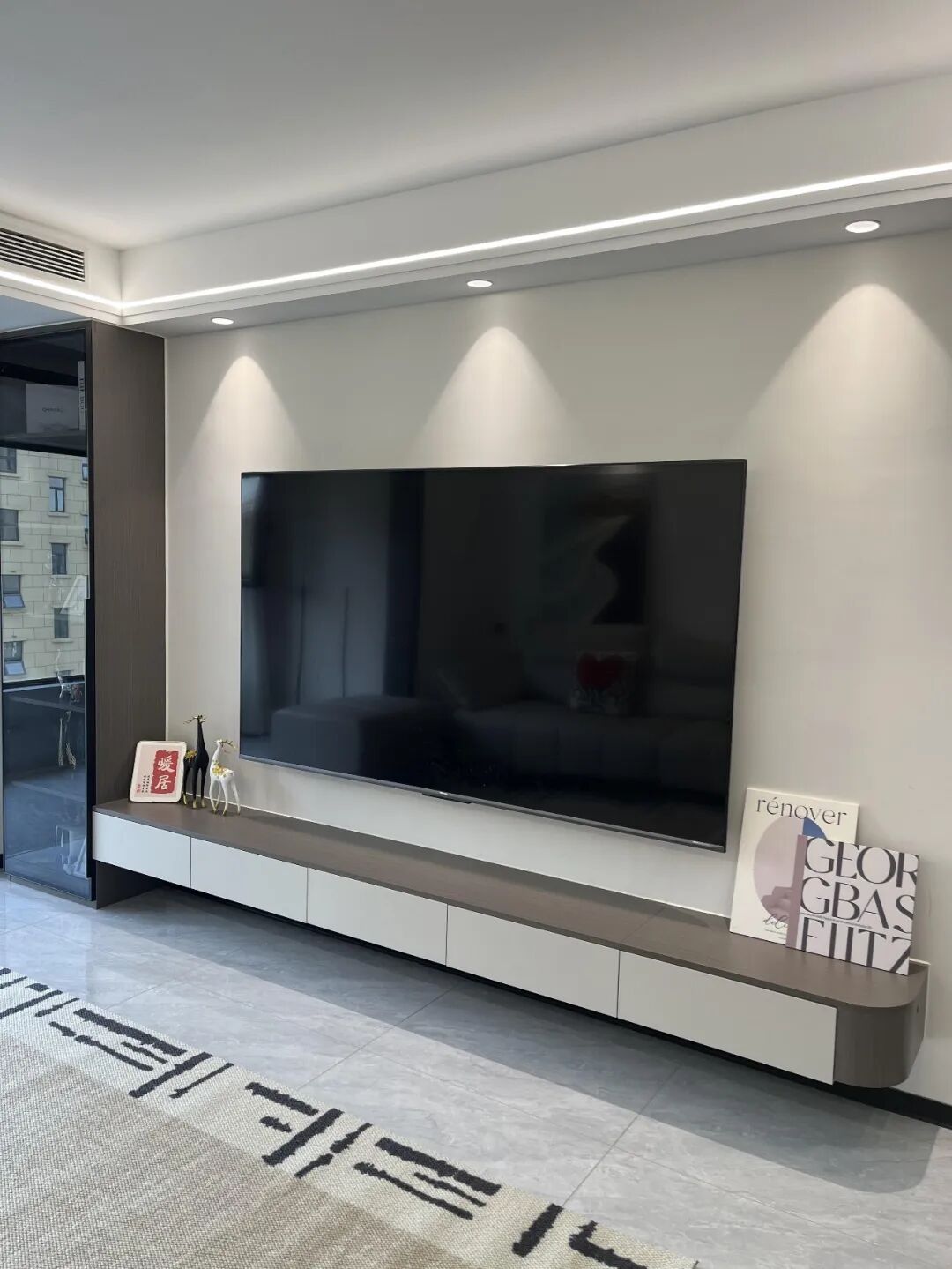 电视柜悬空,视觉轻盈,扫地机器人来去自由,没有卫生死角。