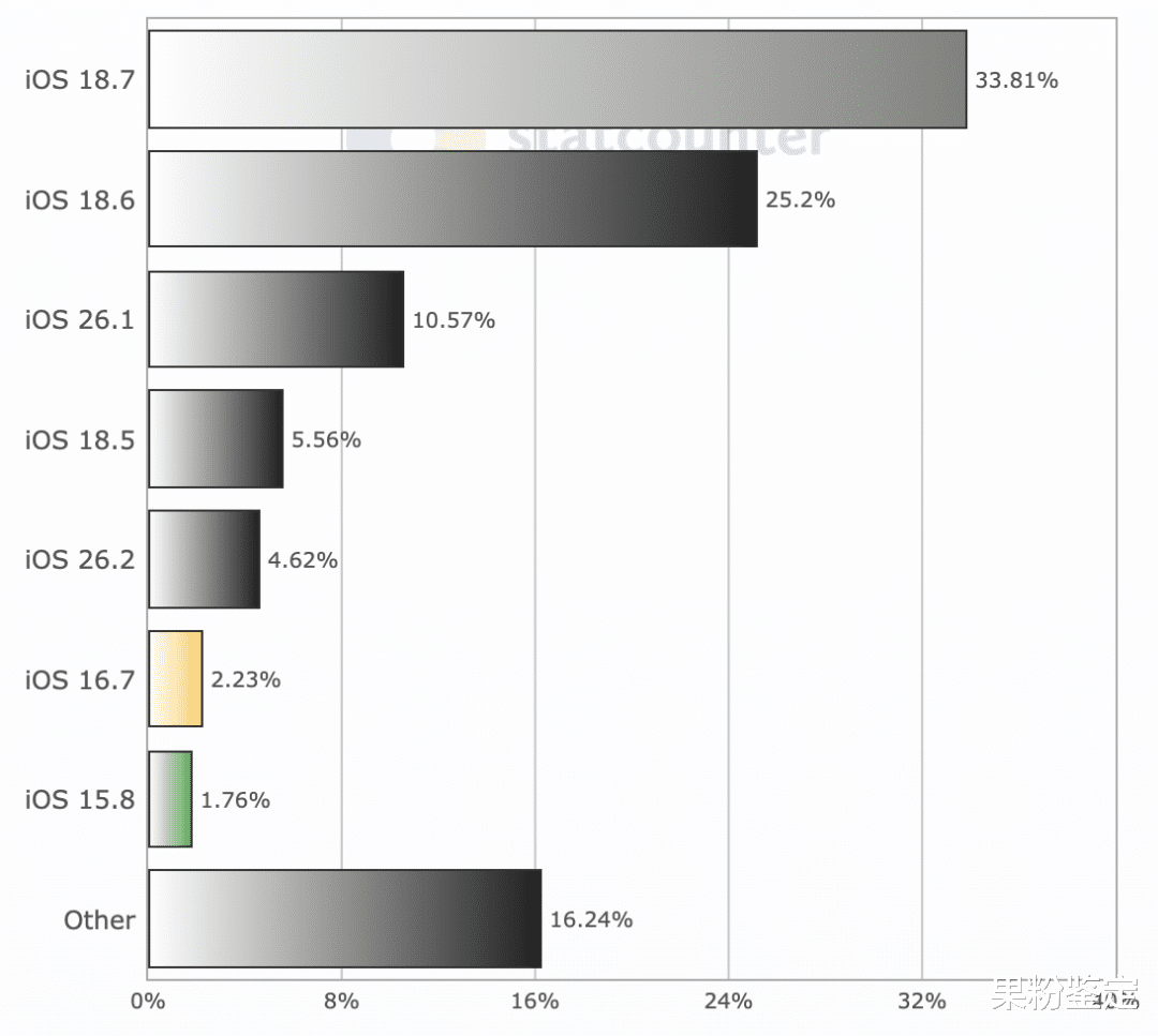 iOS 18.7 版本占比 33.8%