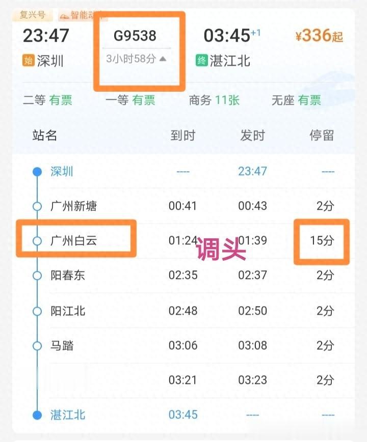 在白云站需要掉头,这会耽搁 15 分钟。若广州站的联络线建设完善,直接经佛山走可能会更快,但目前只能如此。列车一路经过云浮、阳江、茂名,最终抵达湛江,这条线路已然成型。