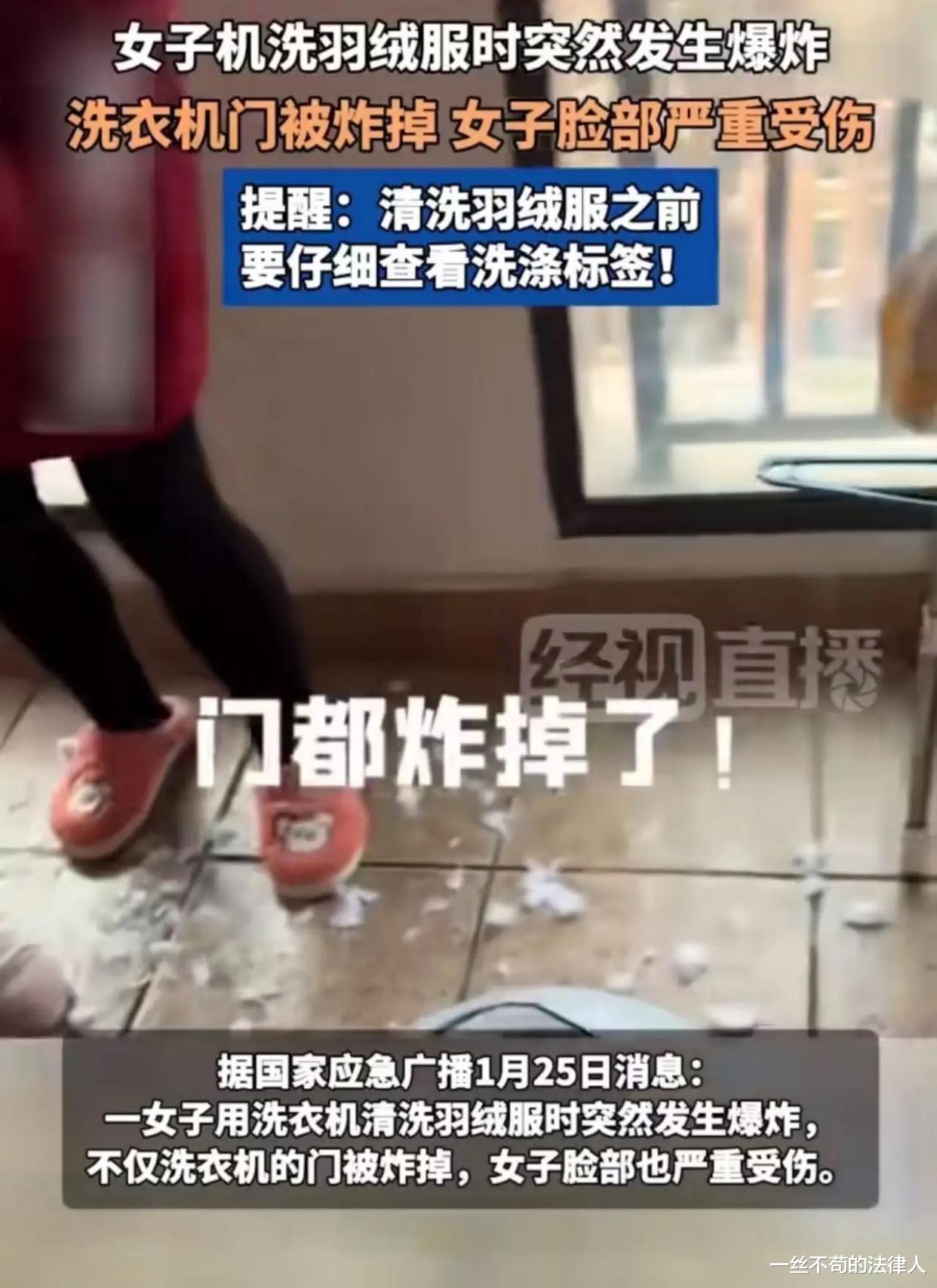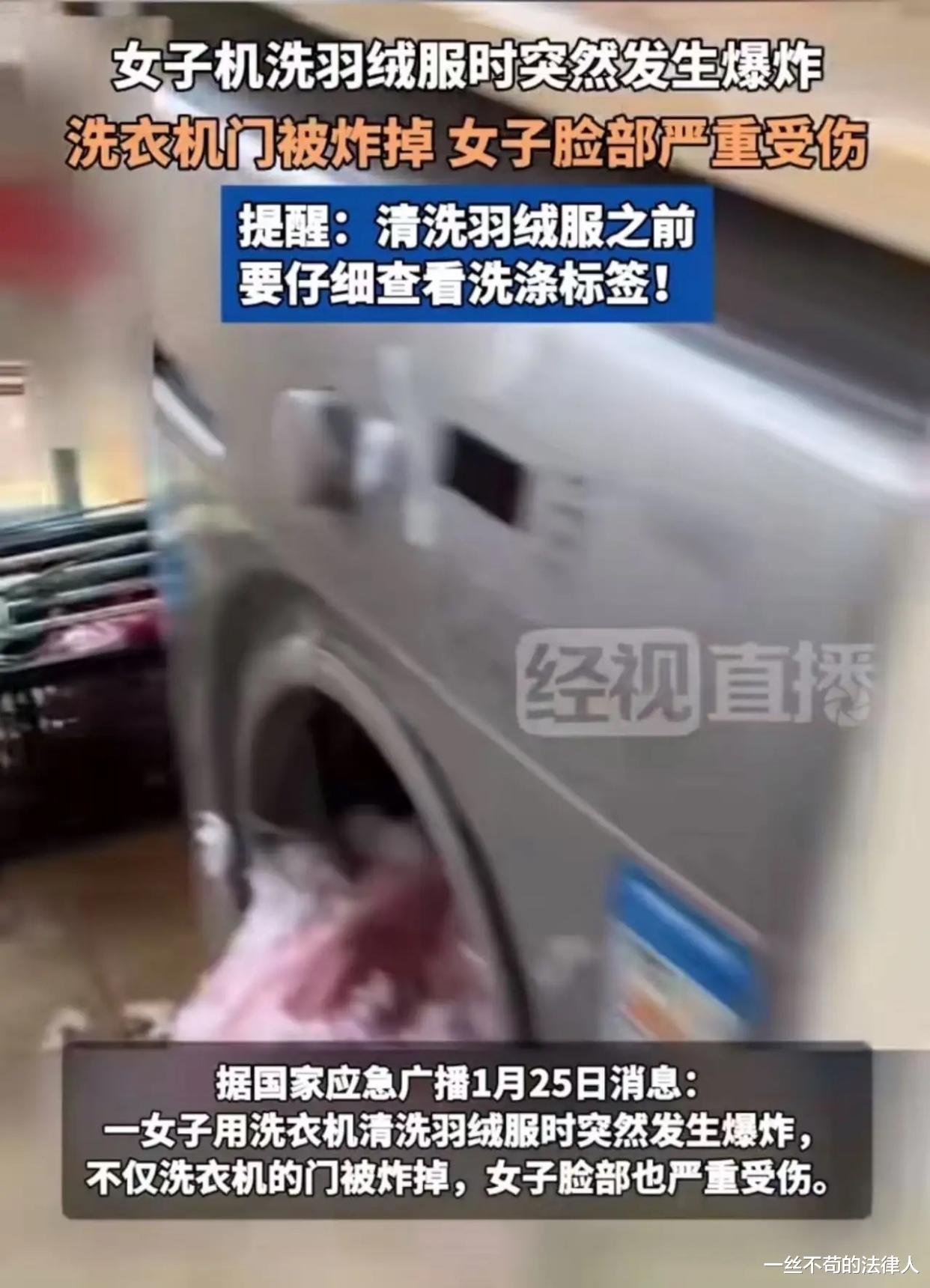 近日,一起因机洗羽绒服导致的洗衣机爆炸事件引发广泛关注。一女子将羽绒服放入滚筒洗衣机清洗,短短几秒后机器突发爆裂,玻璃门炸飞致其面部严重受伤。本文将还原事件经过,解释背后的科学原理,并重点从法律角度分析事故责任,探讨消费者如何维权。这不仅是安全常识课,更是一堂生动的法律警示课。
