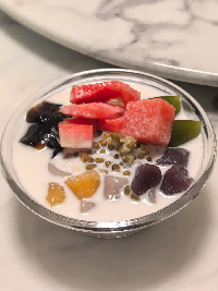 以椰奶为底,搭配绿豆、红豆、薏米、莲子、龟苓膏、西瓜等十余种食材,口感丰富,清甜解暑。椰奶的醇厚与各种食材的清甜相融,龟苓膏的微苦中和了甜腻,冷藏后食用,一口下去清凉爽口,没有大众化甜品的甜腻,尽显海南本土风味与南洋风情的融合,夏天吃超合适。
