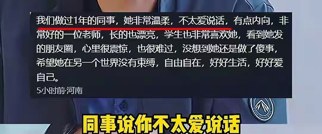 同事眼里的她,性格温柔,长相漂亮,知识面很宽。