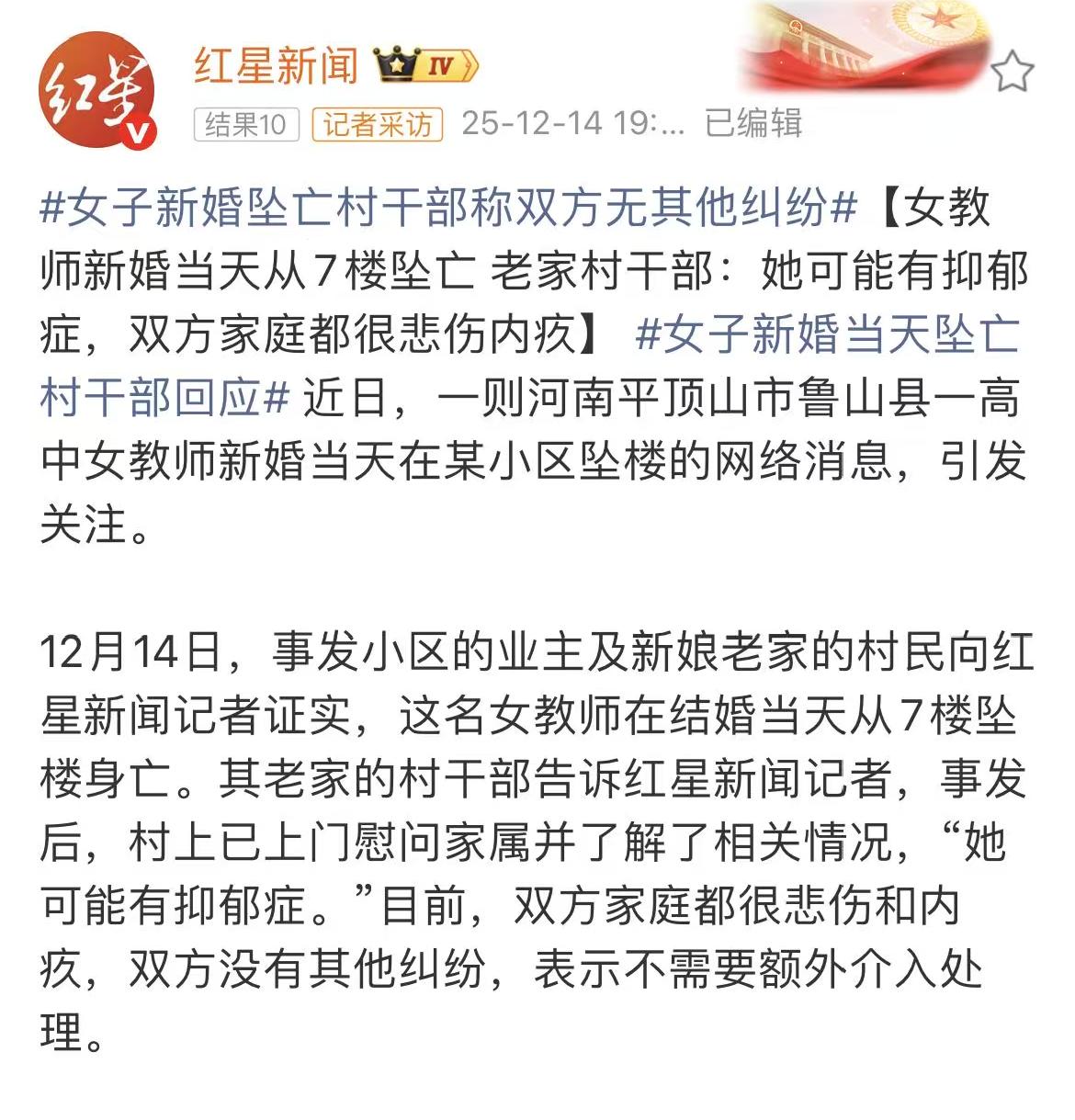 知情人透露,新娘在办婚礼当天,从7楼跳下。
