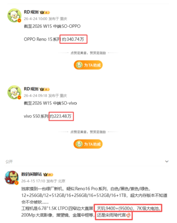 还是说Reno15系列纯看自己的产品力呢?