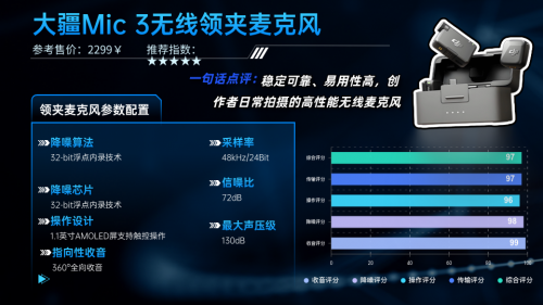 素材导出支持USB-C一键直传或DJI Mimo App无线下载,操作便捷高效。整体来看,DJI Mic 3在专业性、功能完整性与使用效率上达成完美平衡,是追求稳定输出与高效创作的专业用户首选,但若对极致轻量化或温润音色有特殊偏好,可根据自身需求权衡选择。