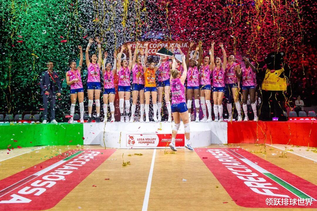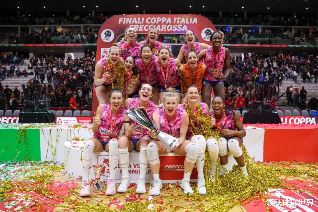 队长沃沃什作为场上指挥官,她沉稳的分配与战术掌控至关重要,这是她与球队合作的第27个冠军。自由人德吉纳罗则拿下个人在科内生涯的第30个冠军头衔,也是她个人第八次捧起意大利杯。