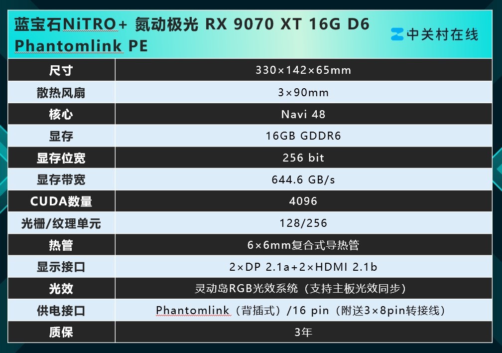 【中关村在线原创评测】RX 9000系列显卡凭借革新性架构与强悍性能备受关注,其中RX 9070 XT以5000元左右的价位段主打4K高画质游戏与专业创作需求,也成了众多游戏玩家关注的重点。此前蓝宝石曾经在COMPUTEX2025上展示了PhantomLink设计的主板和显卡,其模块化接口可以提供高达1000W的功率,现在蓝宝石将其应用在NiTRO+ 氮动极光 RX 9070 XT 16G D6 Phantomlink PE显卡上,将纯白极光配色,灵动岛RGB光效集合在一起,为准追求高端体验与个性化装机的玩家打造颜值和性能超群的体验,下面我们就带来蓝宝石NiTRO+ 氮动极光 RX 9070 XT 16G D6 Phantomlink PE显卡(下简称蓝宝石NiTRO+ 氮动极光 RX 9070 XT)的评测。