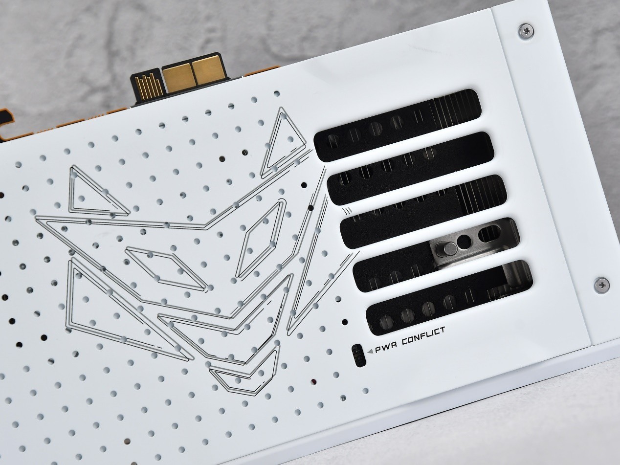 还有一个小细节是,这款显卡配备PWR CONFLICT供电冲突指示灯,若两种供电方式同时连接,指示灯会亮起提醒,避免显卡因供电冲突无法正常工作。