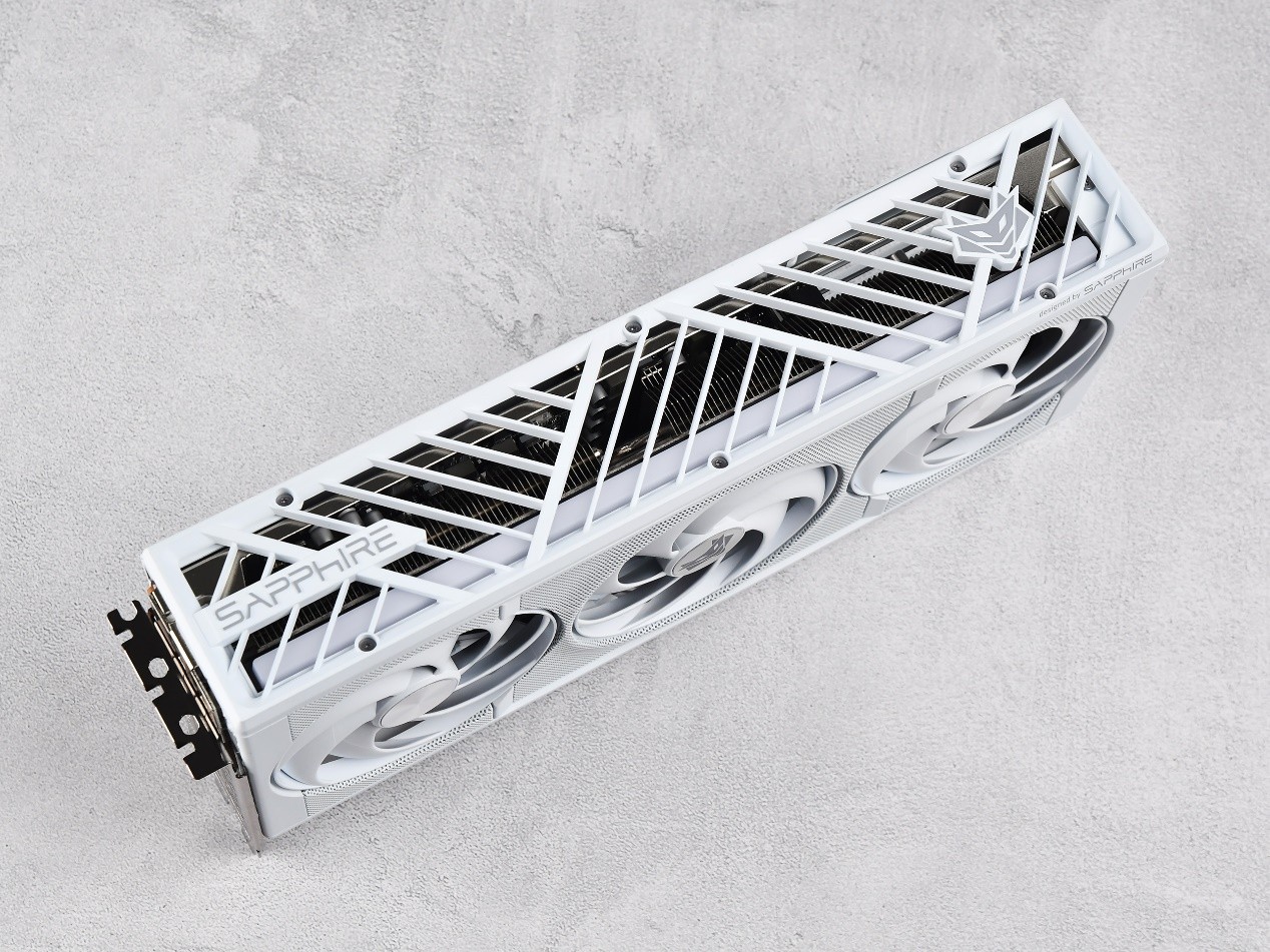 蓝宝石NiTRO+ 氮动极光 RX9070 XT采用蓝宝石POLAR极光理念打造的专属白配色,整卡外观及风扇均采用雪白烤漆工艺,内部一体式框架则呈现银色金属质感,在一众深色 DIY 配件中极具辨识度,完美契合当下流行的白色装机潮流。