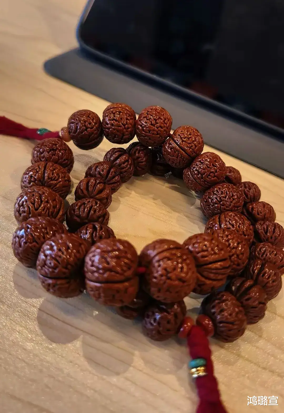 那么要如何处理呢?其实很容易在文玩变色稳定后就需要隔绝汗液油脂佩戴手套盘玩,通过抛光来让文玩的颜色更加稳定,同时逐渐生成包浆!包浆浑厚以后依旧隔绝汗液油脂盘玩同时穿擦一个中等强度的干刷抛光,这种盘玩方法对纹路深邃的菩提子和文玩核桃是有奇效的,只要坚持这种盘玩方法不出一个月你的文玩就会有一个明显的亮度提升!至于说“我打算刷到玛瑙级别”,那就看您能够坚持多久了,这个周期是由答案的那就是“越久越不嫌久”