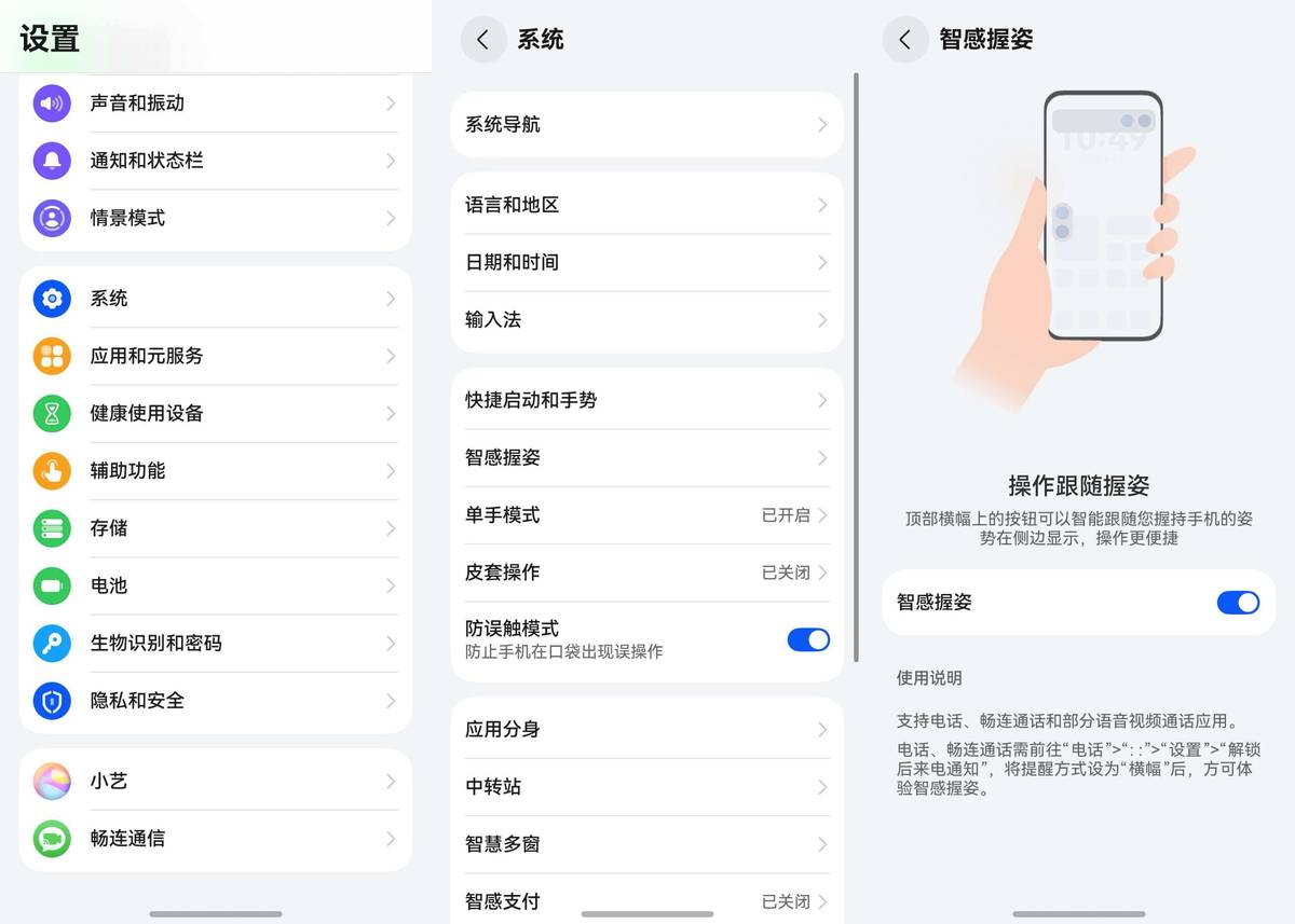 我这才想起来,原来是我这台鸿蒙6手机上开启的“智感握姿”功能在悄悄发力。之前只是随手点开了这个开关,没太当回事,没想到居然在不经意间解决了单手操作的小麻烦。