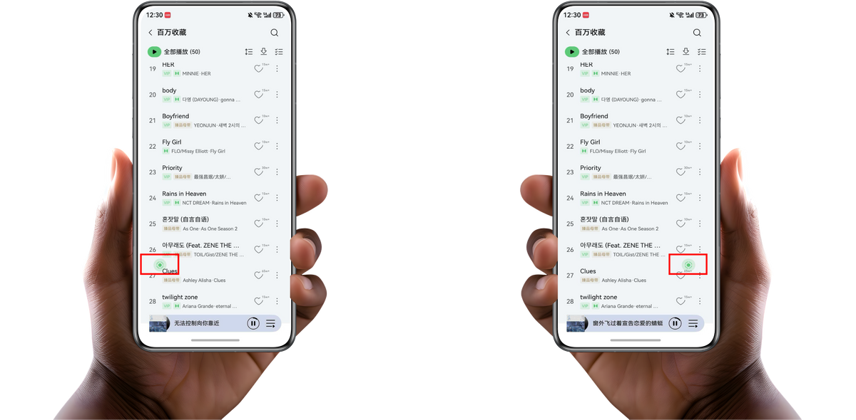 当然,除了接听电话,支持智感握姿功能的应用也越来越多了。比如前面提到的鸿蒙版好看视频,点赞按钮会跟手走;用鸿蒙版QQ音乐想跳到正在播的歌,定位键也会乖乖待在顺手的位置。还有用来记账的鸿蒙版桔子账本,AI对话按钮也是握在哪边就会出现在哪边。