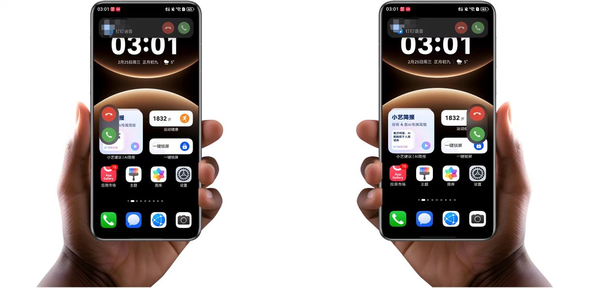 另外,鸿蒙版微信的语音、鸿蒙版钉钉的电话这些就不用说了,跟电话和畅连一样,来电会自动适配当前握姿。