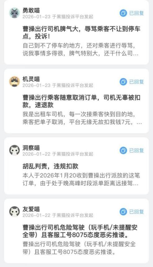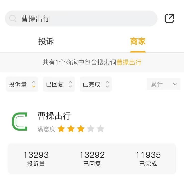 在“黑猫投诉”上,有关“曹操出行”的投诉累计超过13000条。其中相当一部分涉及曹操出行的安全管理与服务规范,与前文事故暴露出的问题领域有所重叠。