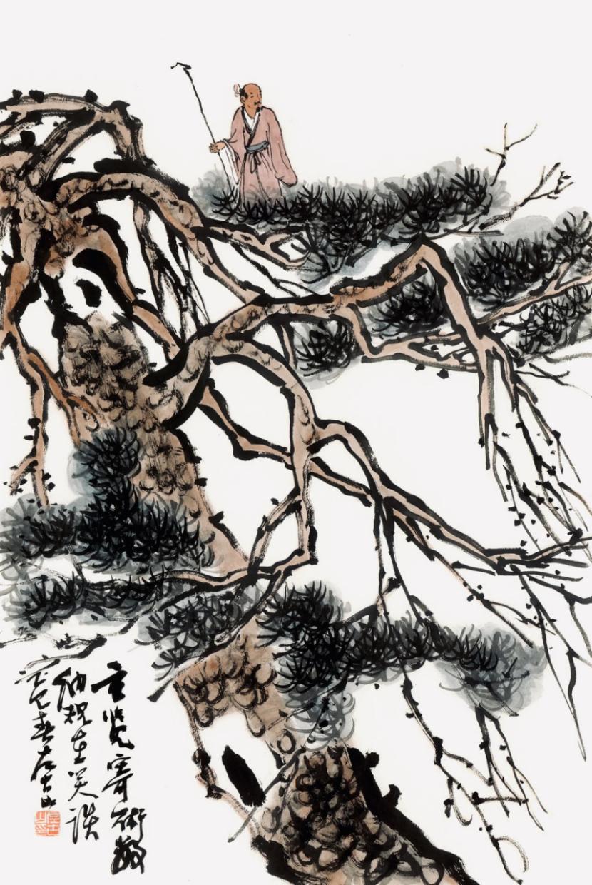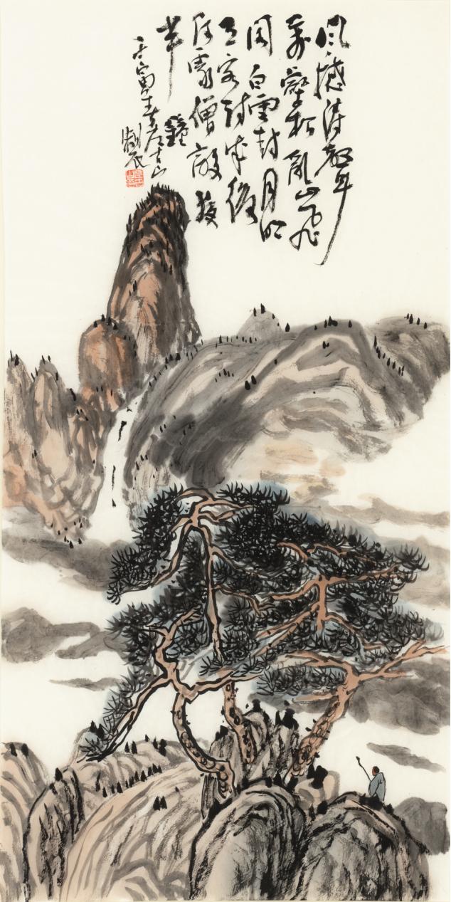 四十余年的艺术探索之路,恰似一场漫长的问道之旅。从淮安少年时临摹《芥子园画谱》的懵懂,到负笈金陵师法宋元的执着;从对王蒙繁密皴法的揣摩,再到髡残苍浑笔意的体悟;直至在黄宾虹"五笔七墨"理论中寻得突破。作为一名中国水墨艺术的实践者和研究者,我深知传统文化传承创新的重要性,探索过程中,我的艺术创作始终根植于中国传统绘画的正脉,坚持"笔墨当随时代"的艺术主张,中国画的当代性,不在于形式的标新立异,而在于如何以古法开新境。本次展览呈现的69幅作品,正是这种探索的阶段性总结,其中有54幅"古山松"作品,人物,山水与花鸟作品各5幅。以松为媒,寄寓我对中国文化精神的思考;人物作品,延续了传统造像的庄严气象;山水与花鸟,则是我对自然万物的诗意观照。