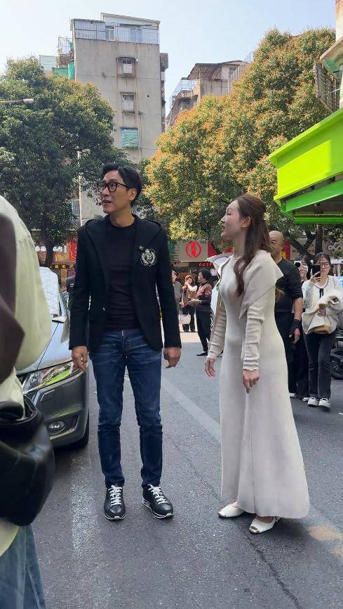 两人同行的画面,很快吸引了周围路人的注意,不少人纷纷驻足围观,还有人拿出手机拍照记录。