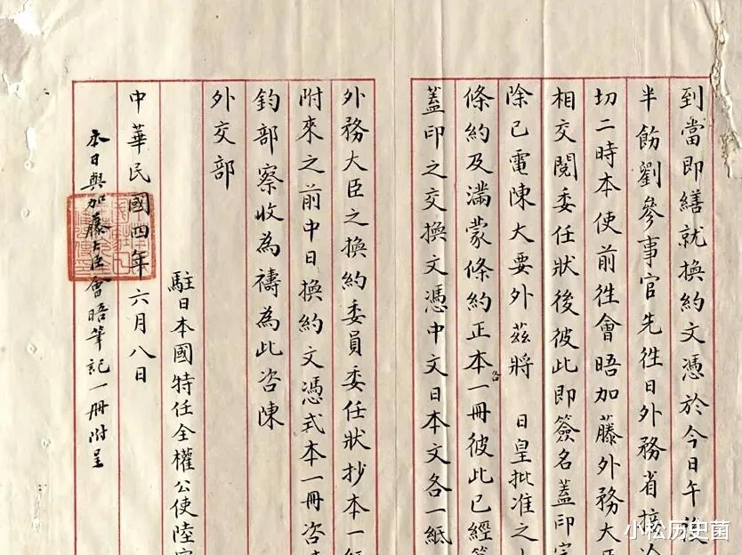 最终,袁世凯政府面对日军威胁,被迫妥协,并于1915年5月和日本订立改版的《二十一条》,这便是《中日民四条约》,条约一出,举国悲痛!