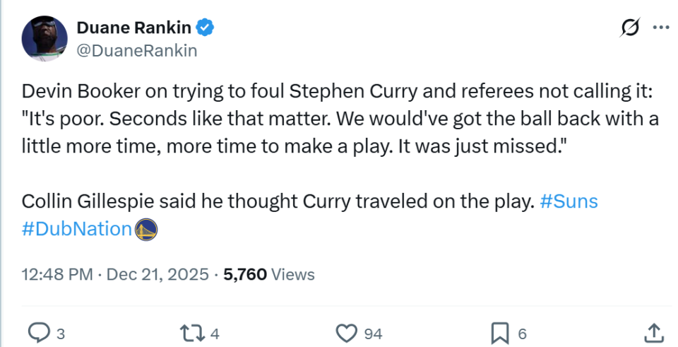甚至连对手布克也对此感到不解:“这真是一次糟糕的吹罚,那几秒至关重要,如果多给我们一点时间,我们能够拿回球重新组织进攻,这显然是一次漏判。”